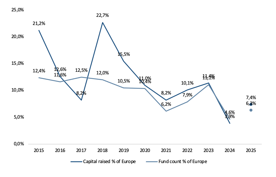 French VCs are also feeling the pinch. After bucking the downward trend post-pandemic, French VCs appear to be having a tougher time raising and closing funds over the past two years.