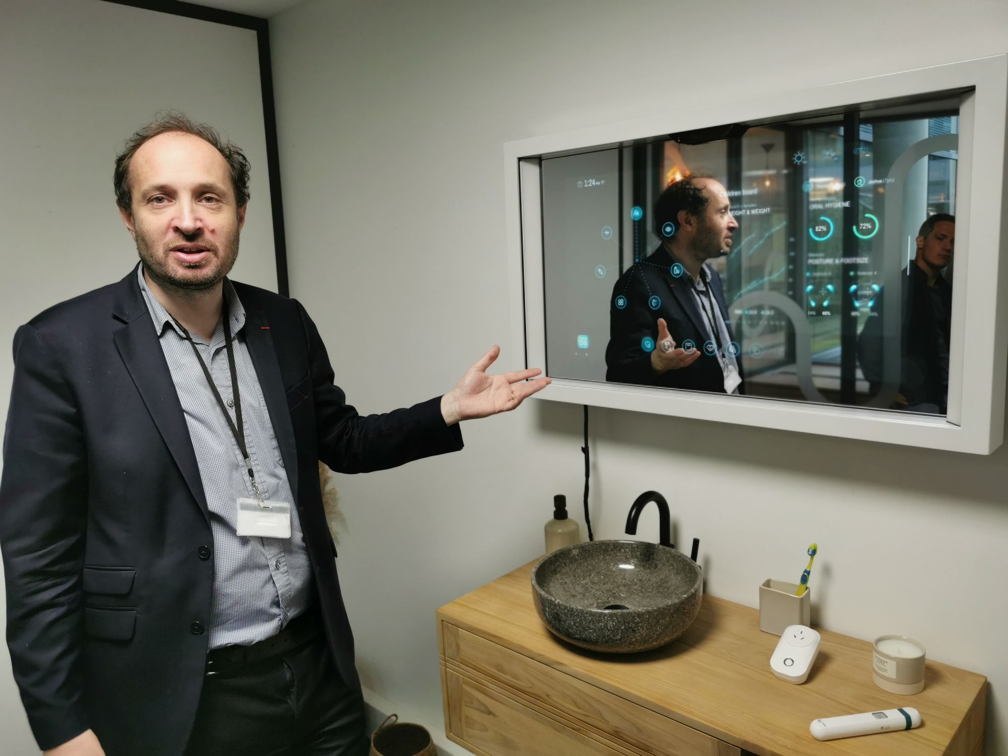 The mirror runs on the CareOS platform built by Baracoda, and interfaces with its BConnect Hub that allows other connected devices to plug into the home healthcare ecosystem by using the BConnect interoperability protocol. That includes Baracoda's own BBalance connected bath math that uses AI and footprint recognition to track foot size, problems with posture, and weight. In short, Baracoda is a deeply technical company that is creating all the hardware and software aspects of its products.