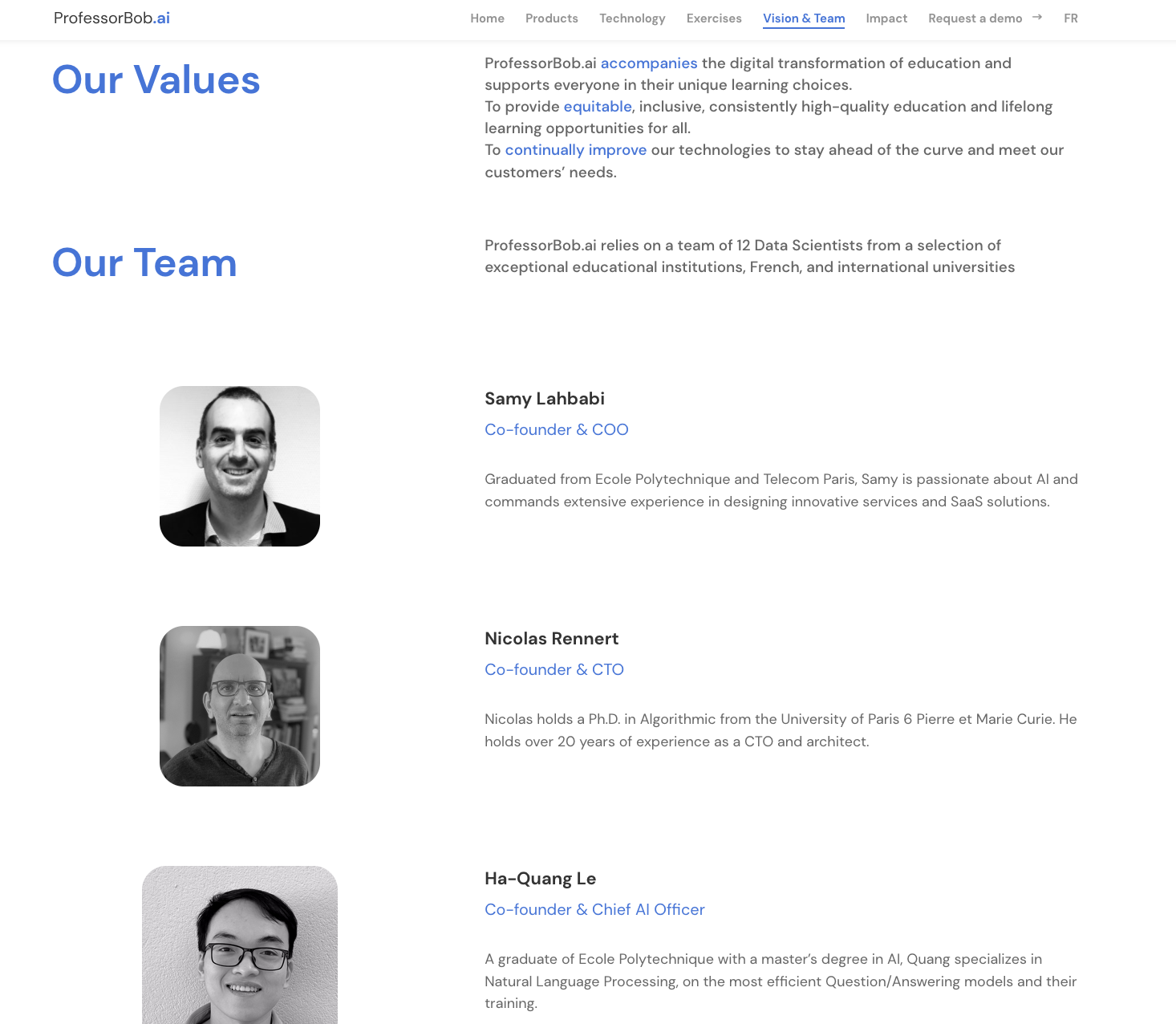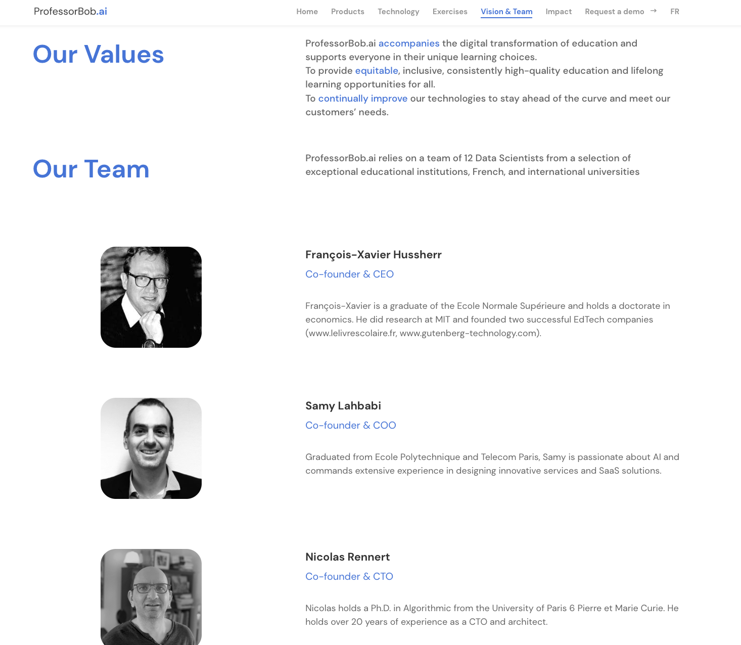From 2009 to 2018, according to his LinkedIn bio, Hussherr was cofounder and CEO of Gutenberg Technology, another digital education startup. He subsequently founded and created ProfessorBob.ai, in January 2019, to develop a virtual teaching assistant based on Natural Language Processing.