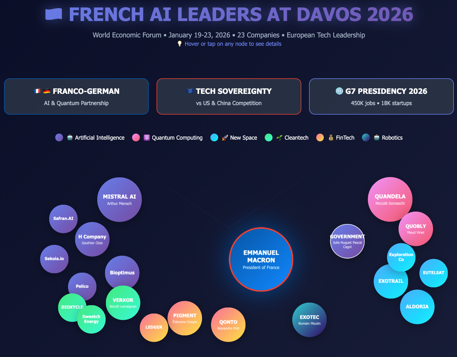 Julie Huguet, Director of the French Tech Mission, accompanied the startup delegation. The companies were directly invited by the Élysée, allowing them to access the Forum without paying the standard admission fees—typically estimated at tens of thousands of euros.