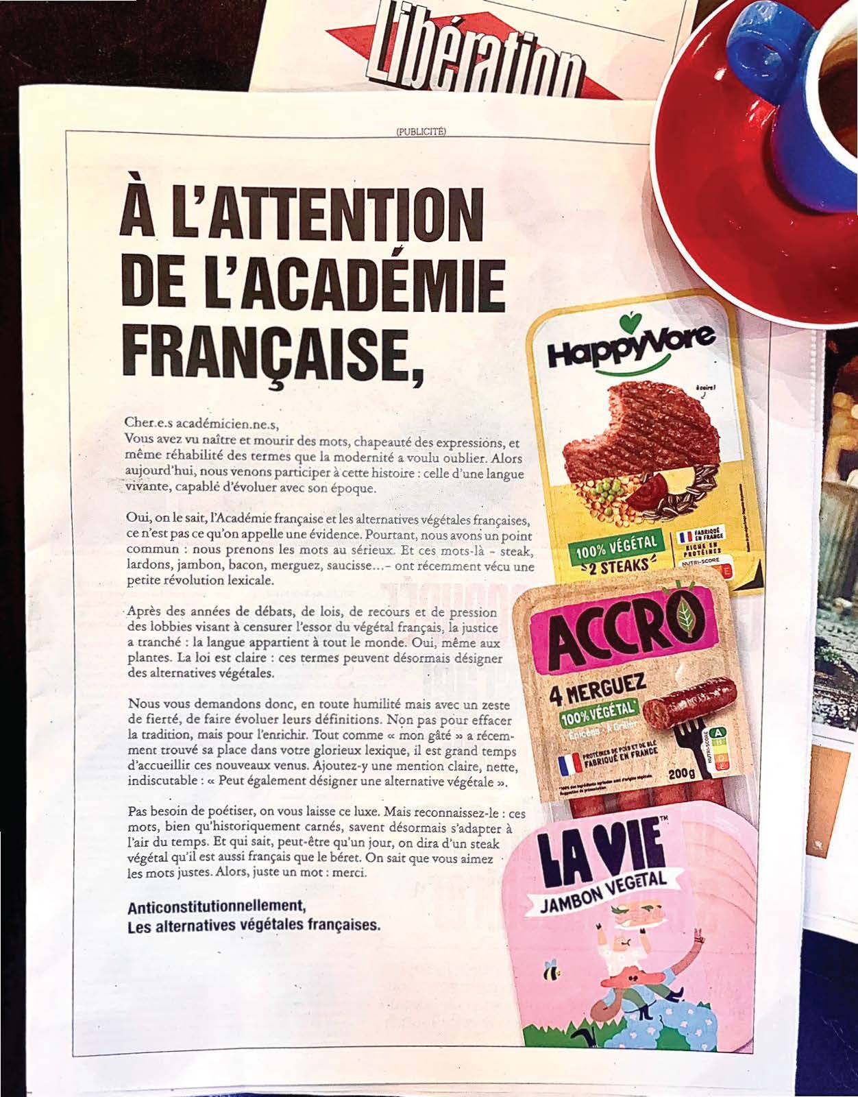 🥩🥓🥦 A major legal victory has been secured for the plant-based food industry in France, as the Council of State officially annulled decrees and a 2020 law banning the use of meat-related names like "vegetable ham" or "plant-based bacon." The court ruled that these restrictions were contrary to European law and could never be enforced. France's traditional agricultural industry had pushed for the restrictions to protect beef and poultry producers. This marks the end of a long legal battle, primarily led by La Vie, HappyVore, and ACCRO, who had fought against what they saw as an unfair and lobby-driven attempt to hinder plant-based alternatives. La Vie CEO Nicolas Schweitzer hailed the decision as a victory for common sense, arguing that the ban unfairly targeted French producers while allowing foreign companies to use the same terms: "We have just written the end of a legal saga that will go down in history. This victory is that of common sense in the face of pressure from intensive farming lobbies. We are delighted to be able to continue to call our products by their names, without compromise or absurdity!" To celebrate, plant-based brands have launched a humorous campaign challenging the Académie Française to officially recognize plant-based alternatives in the dictionary. Bonne chance!