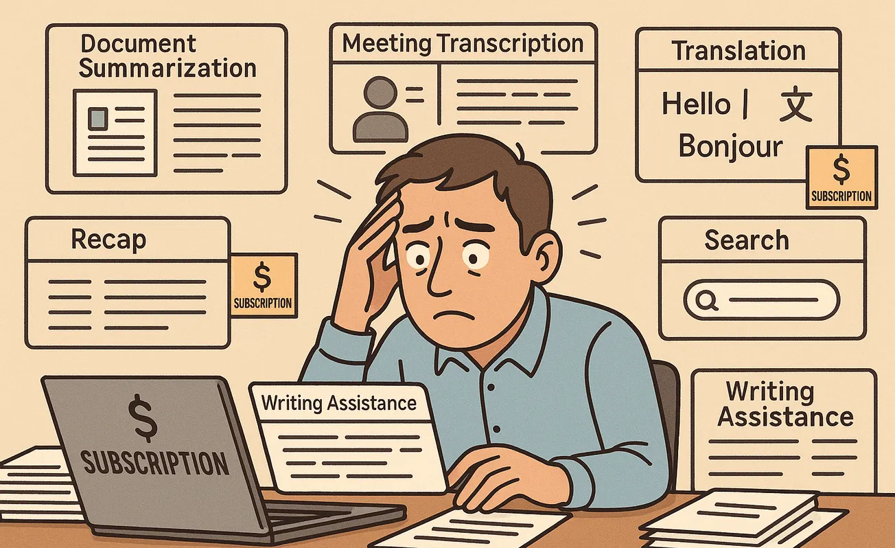 Imagine the typical knowledge worker's day in 2025: bouncing between a dozen specialized AI tools, each siloed in its own ecosystem. One platform for document summarization, another for meeting transcription, a third for writing assistance, and yet more for translation, search, and other AI-powered tasks.