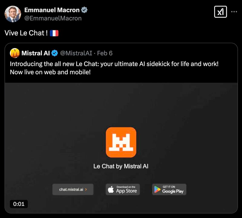 Ah, but then Mistral launched LeChat, with Pro and Team tiers of service and mobile versions for iOS and Android. And just like that – Bam! – Mistral was getting rave reviews for "The FASTEST AI model on the market." Even the Big Man hailed the news: