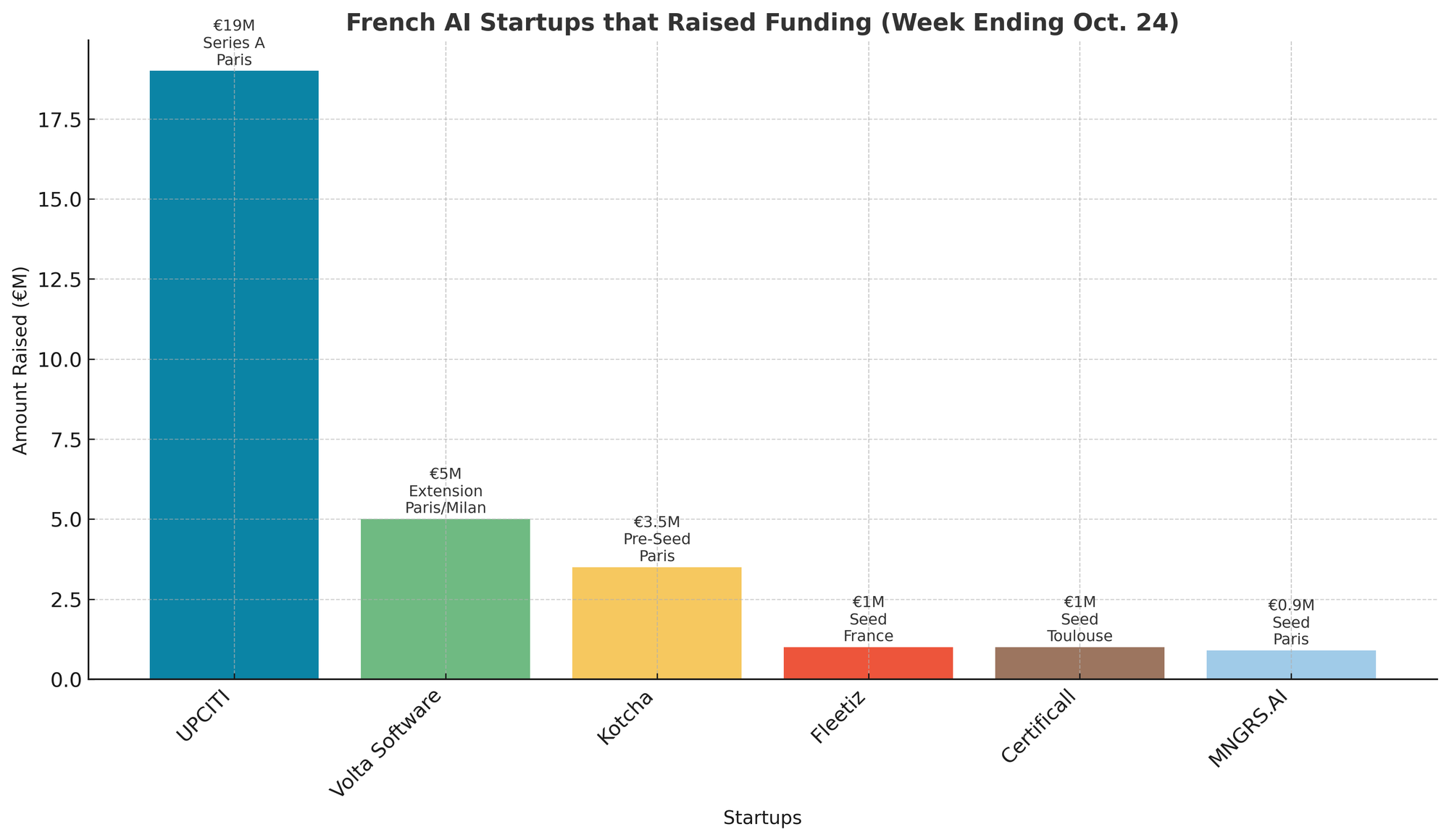For the week ending October 24, there were 6 AI startups that raised a total of €30.4 million.