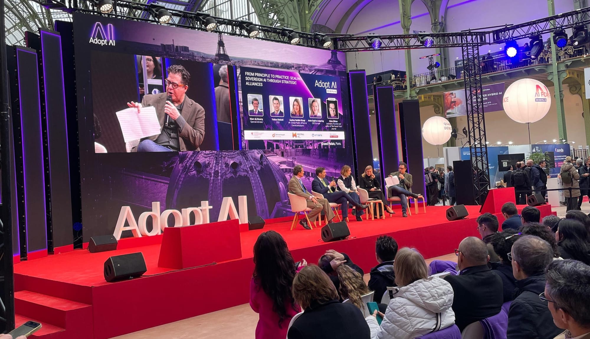 It was a brisk day yesterday at Paris’ Grand Palais, and the Adopt AI Summit was already in full swing. Blue blankets had been handed out to ward off the chill, but even they couldn’t warm up an audience that looked, if anything, a shade bluer than the fabric. Neon-lit stands shimmered under the glass ceiling as attendees bustled, jostled, and debated: Too much regulation? Too little sovereignty?