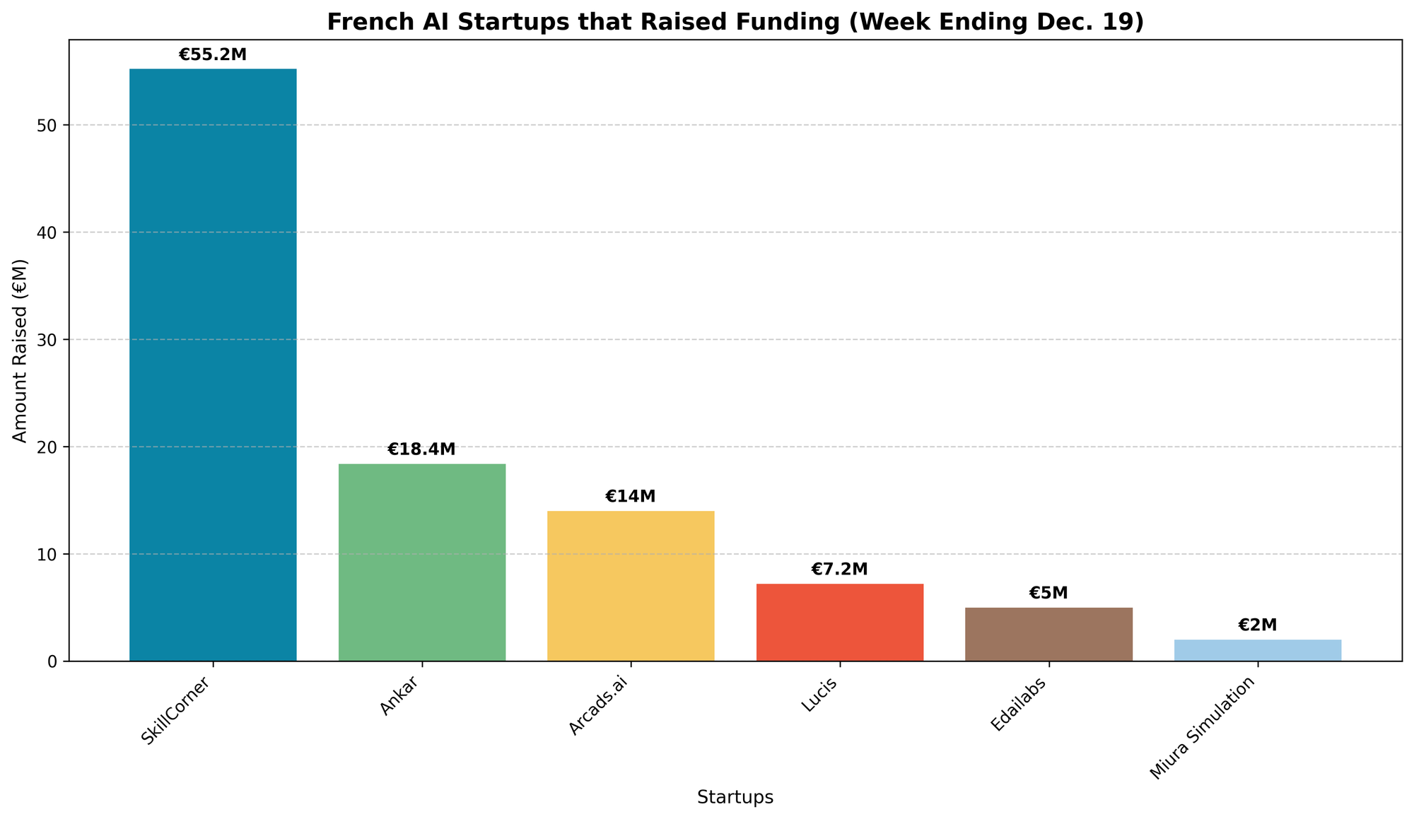 For the week ending December 19, there were 6 AI startups that raised a total of €101.8 million.