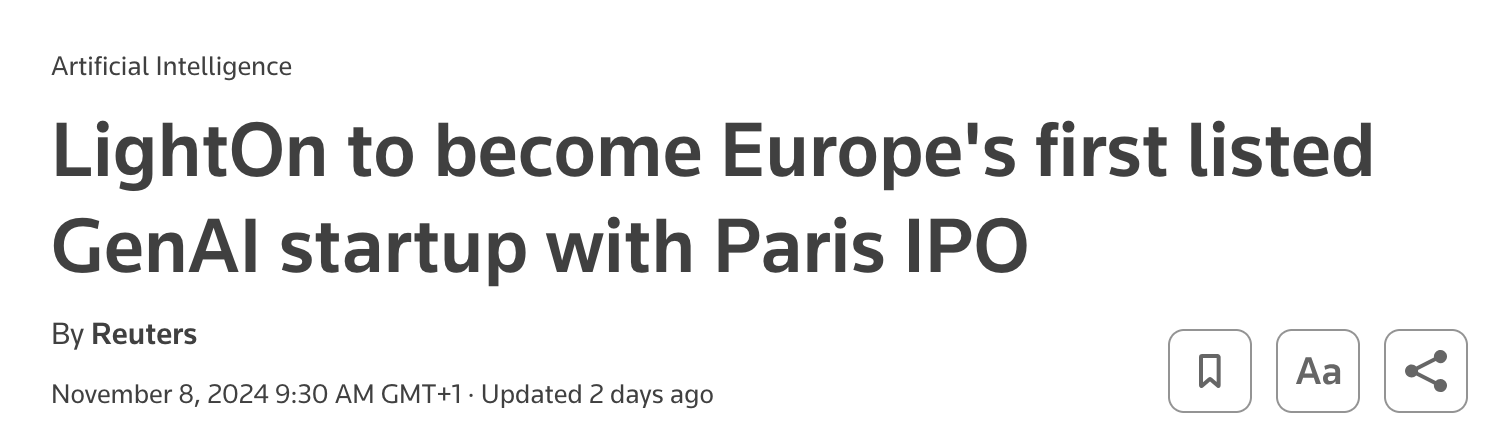 The news that French GenAI startup LightOn filed to go public caused a sizable buzz. That's not surprising given how rare French tech IPOs are, and the fact that the company operates in the planet's hottest sector.
