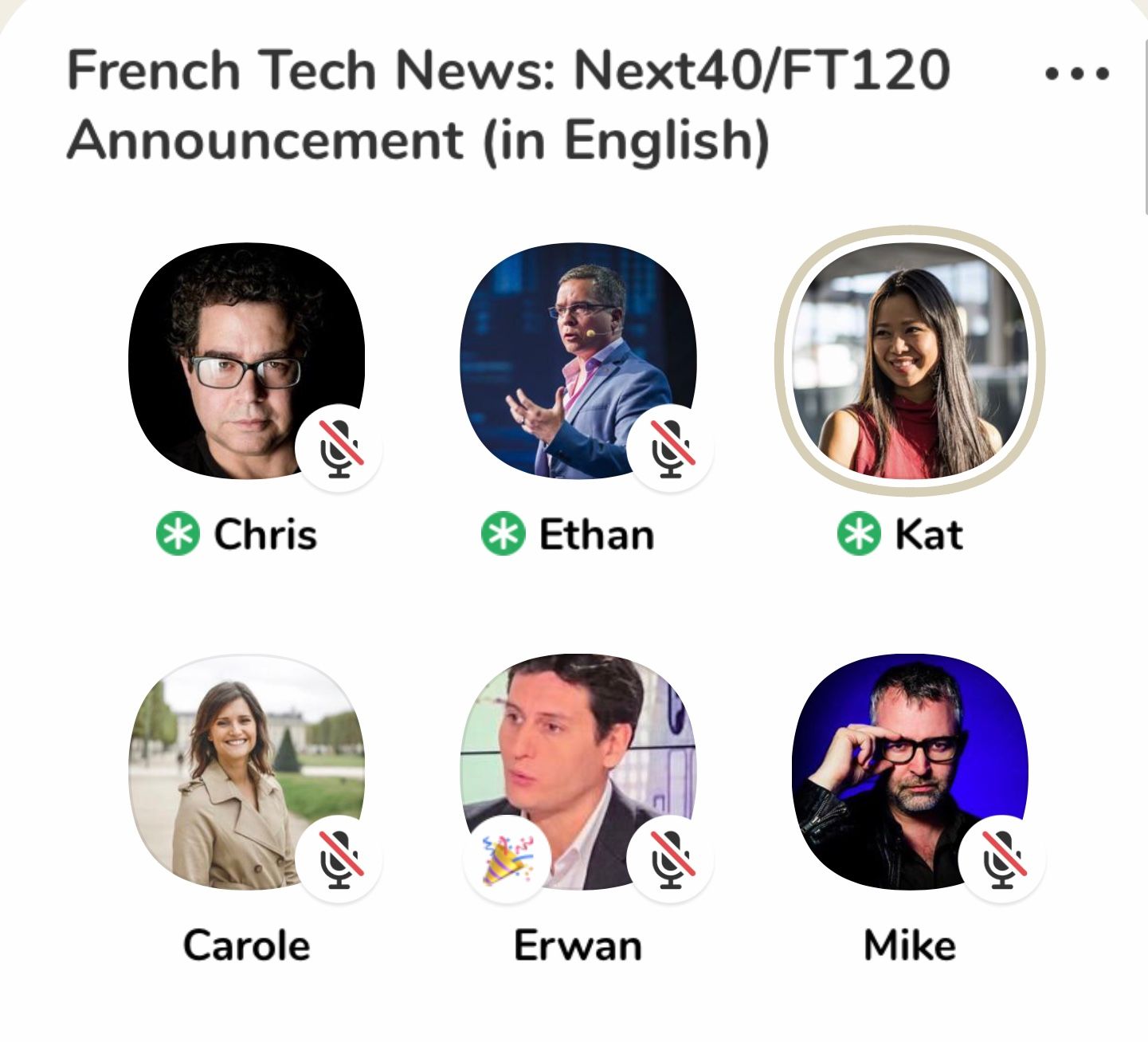 After the second annual list was released, I co-hosted with Ethan Pierse a discussion on Clubhouse about the list that featured Kat Borlongan, the director of La French Tech mission. It also included TechCrunch’s Mike Butcher, CybelAngel CEO and co-founder Erwan Keraudy (new to the Next40), and Joone CEO and co-founder Carole Juge-Llewellyn (new to the 120).