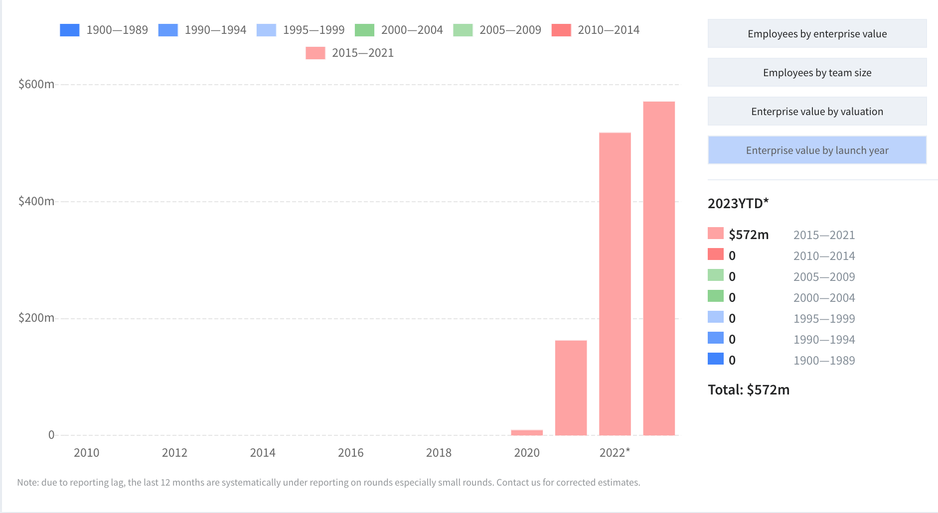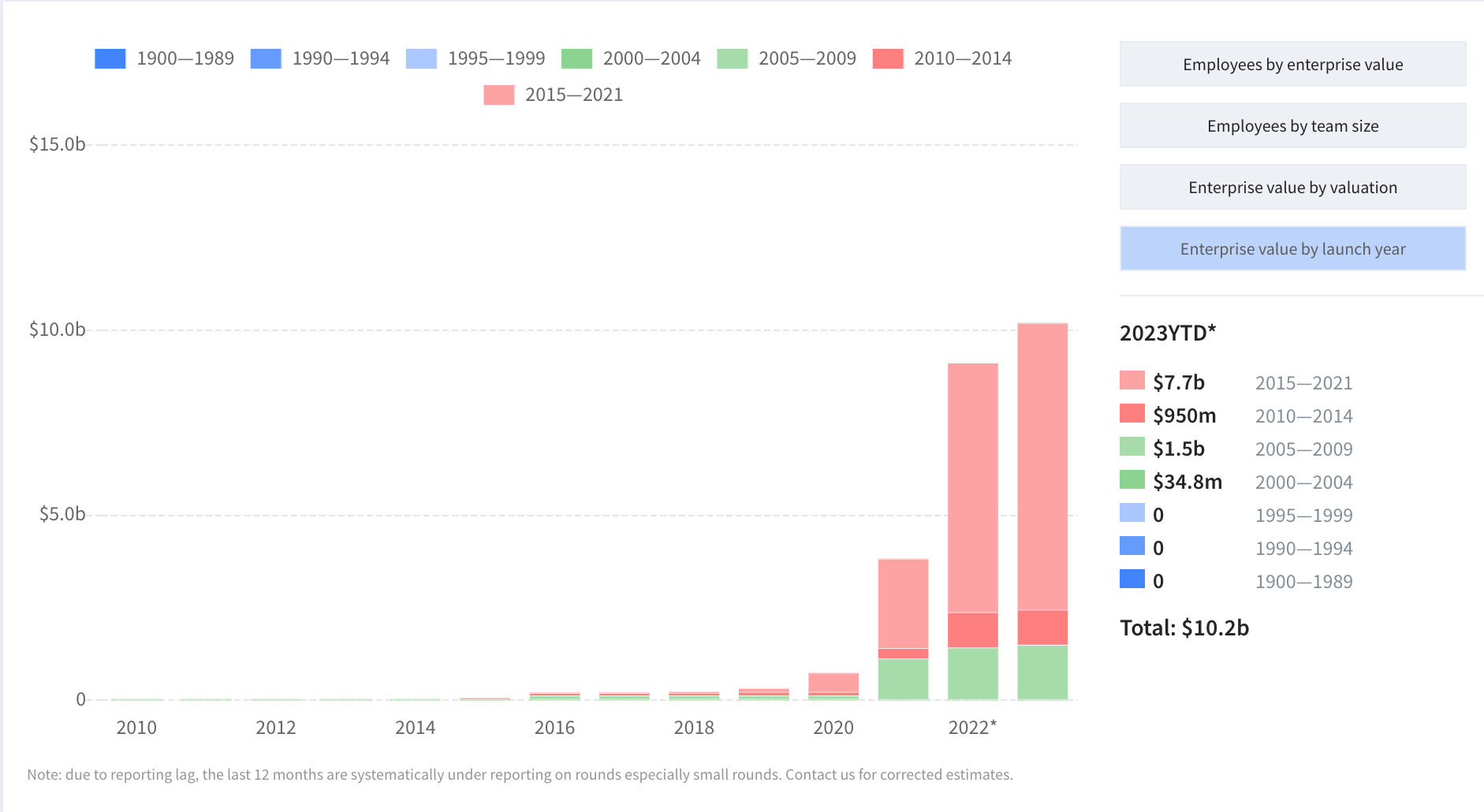 While climate tech spans a wide range of products and services, the carbon tracking and offset segment has emerged as one of the fastest-growing categories. Dealroom lists 305 companies globally in this space. They have raised $24 billion, with $23.1 billion of that money coming since 2021.