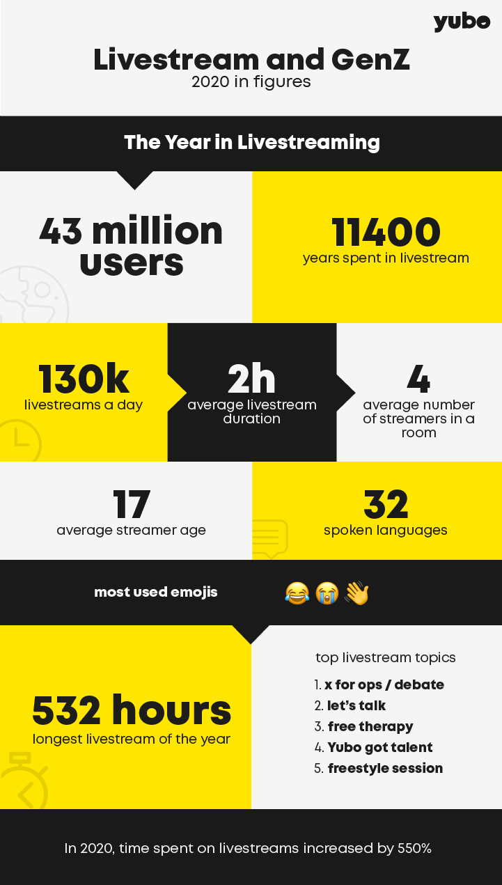The co-founders decided they would need to add live stream capability so that people could talk directly on the app. With that idea in mind, it took them another year to build the underlying technology to enable it. This new version of the app, now called Yubo, launched worldwide in February 2018.
